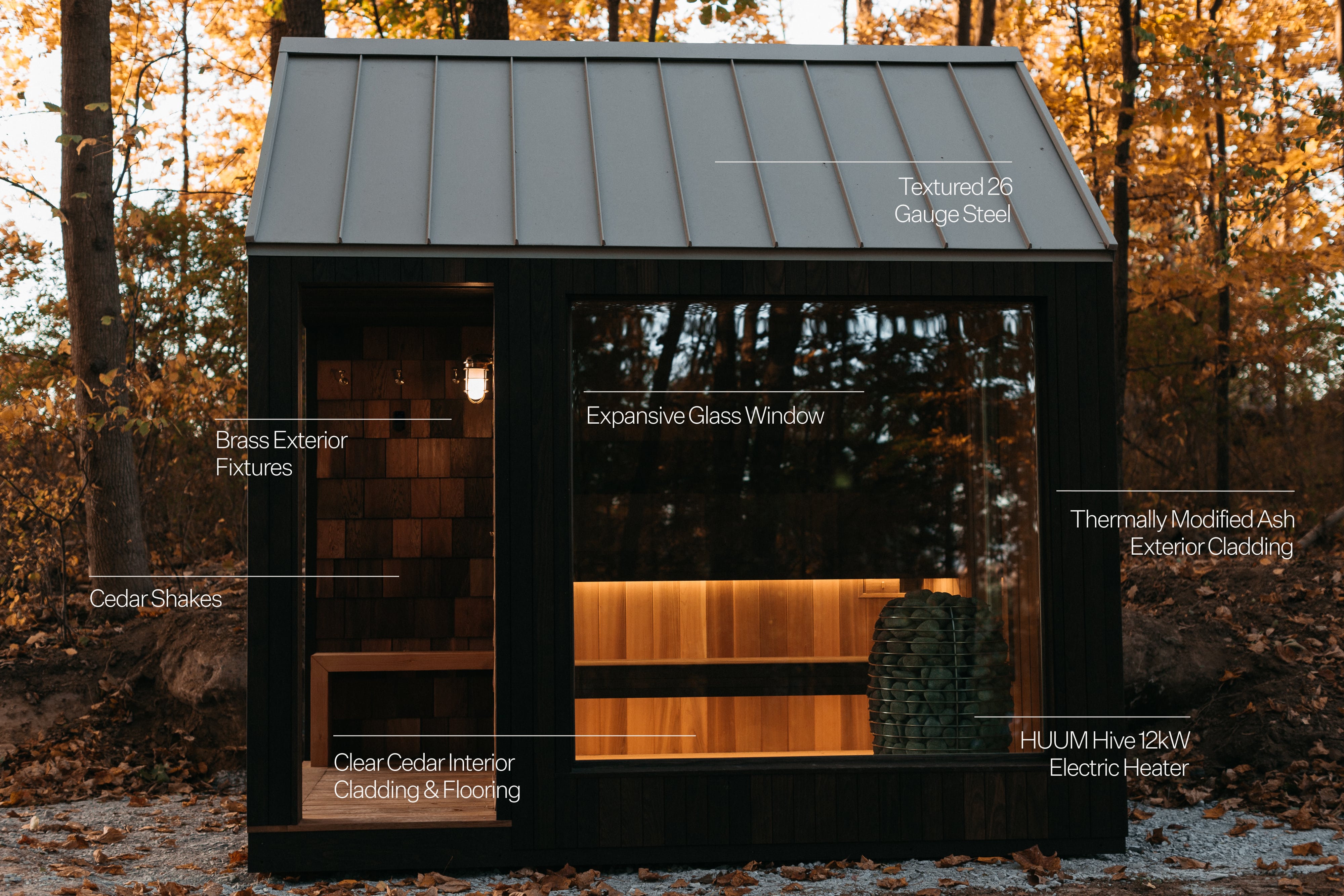 Channeling traditional Scandinavian design while incorporating modern technology, we utilize heaters from HUUM on our builds.