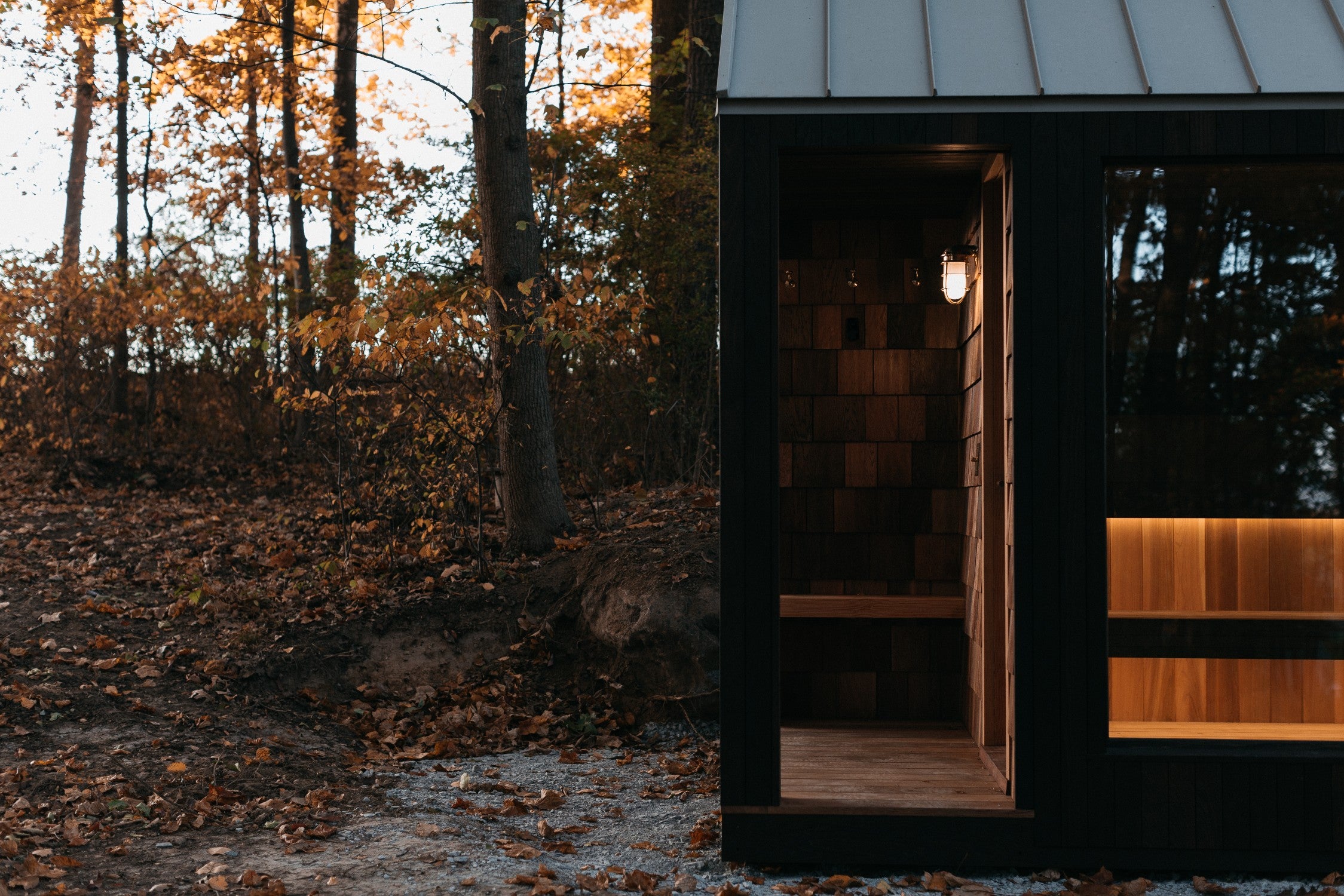 The Iska Sauna is inspired by the ice fishing huts and warming structures that have long provided shelter in the coldest winters across Northeast and Scandinavia. Marrying form and function, this sauna provides a proper escape within a slightly more modern approach in architecture.